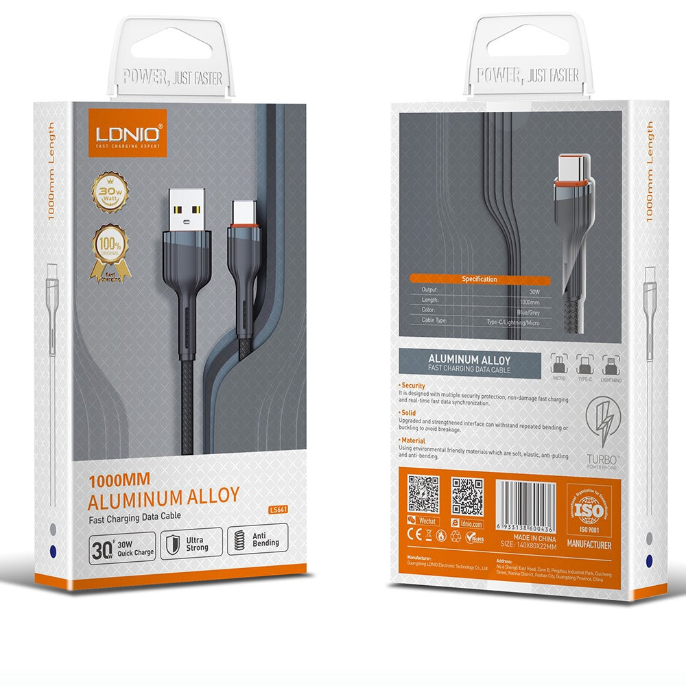LDNIO Braided Type C to USB Metal Connector 1 Meter Cable LS641